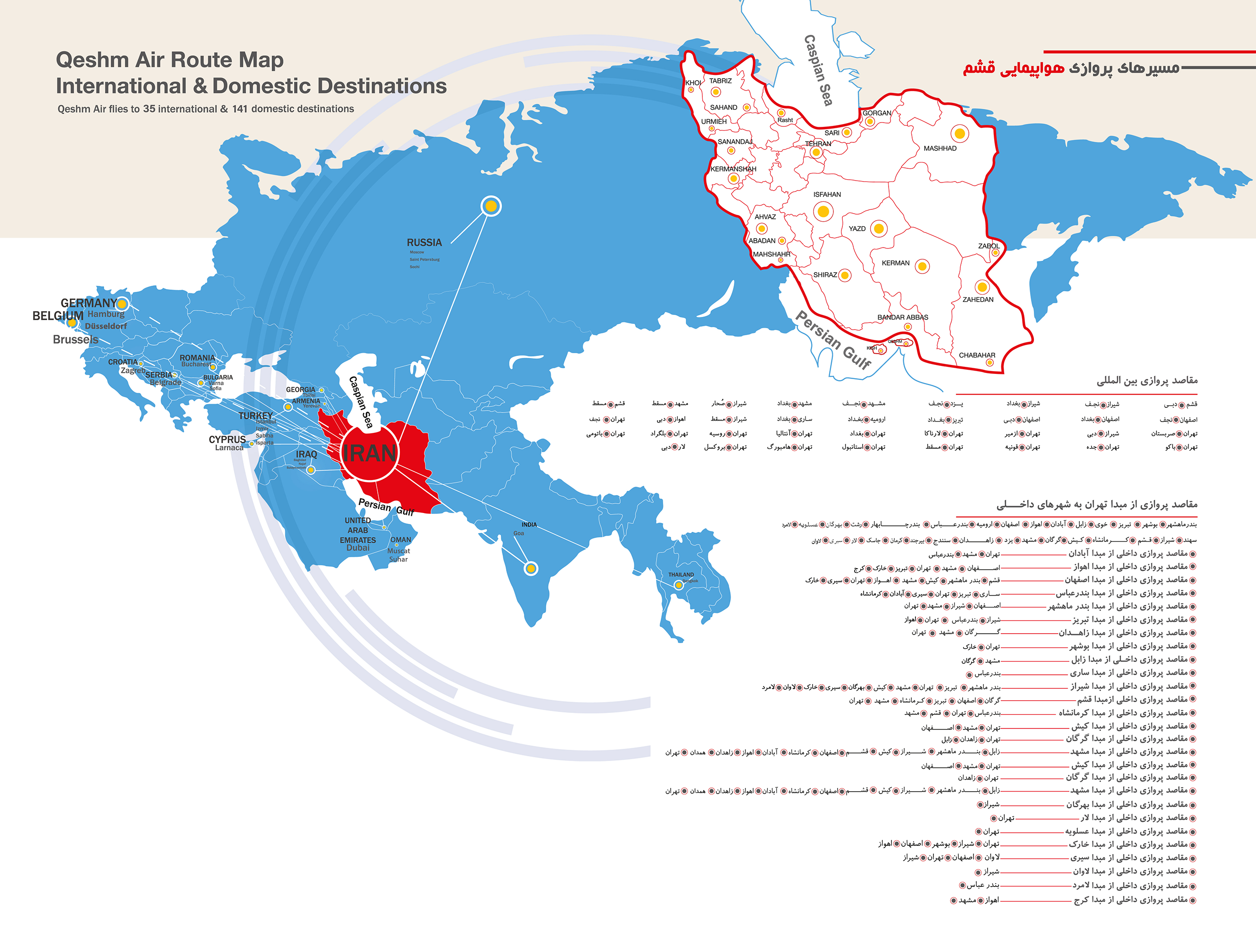 گفتنی است شرکت هواپیمایی قشم تا کنون به ۲۷ مقصد بین المللی و ۲۹ مقصد داخلی پرواز داشته است.