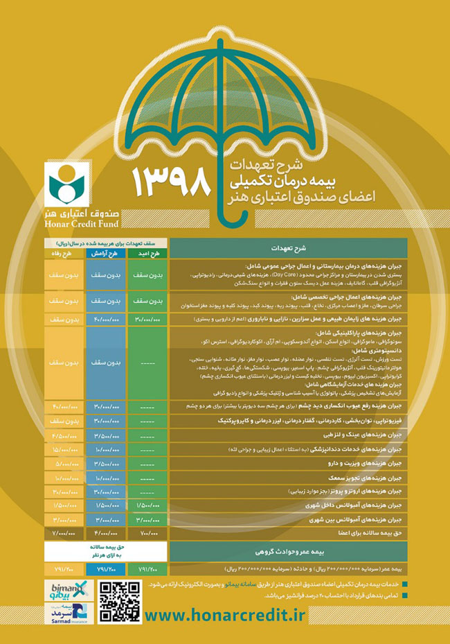 اعضای صندوق اعتباری هنر در سراسر کشور برای استفاده از خدمات بیمه درمان تکمیلی میتوانند براساس قرارداد منعقد شده با شرکت بیمه سرمد از تاریخ ٩٨/٠٤/٠١ تا ٩٨/٠٤/١٢ با مراجعه به وب سایت صندوق به نشانی www.honarcredit.ir ثبت نام و از خدمات بیمه درمان تکمیلی بهرهمند شوند.به گزارش مرزنیوز و به نقل ازپایگاه اطلاعرسانی وزارت فرهنگ و ارشاد اسلامی؛ اعضای صندوق با پرداخت بخشی از حق بیمه کل، مشمول بهره مندی از خدمات بیمه درمان تکمیلی میشوند و مابقی هزینه برعهده صندوق است.